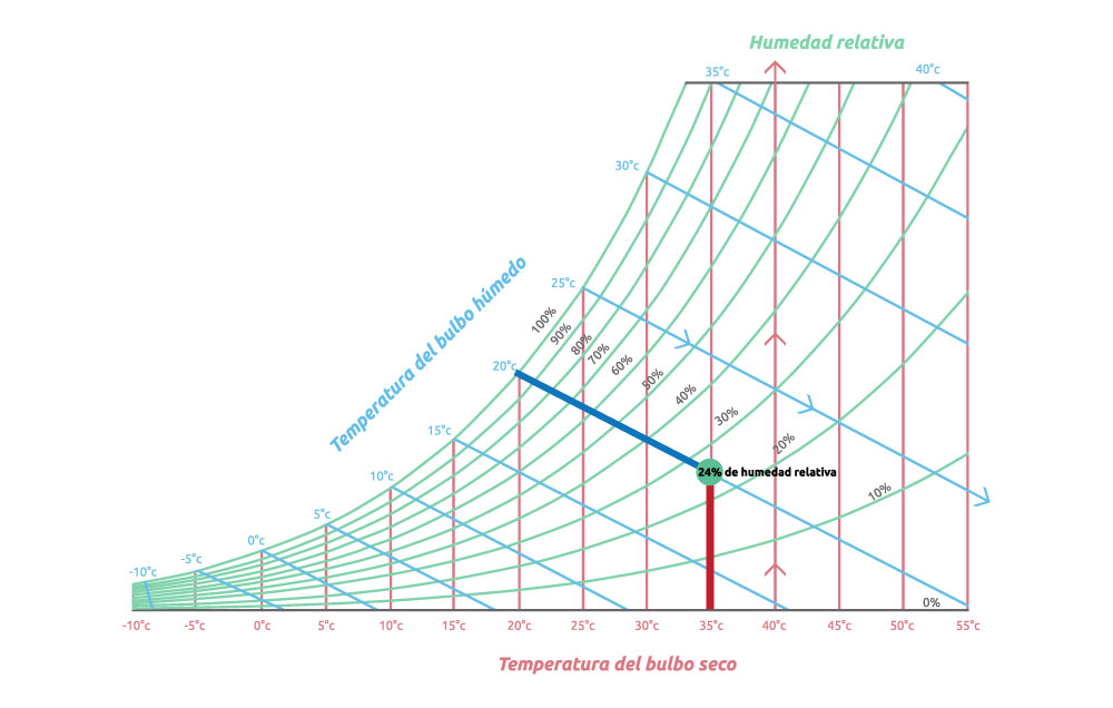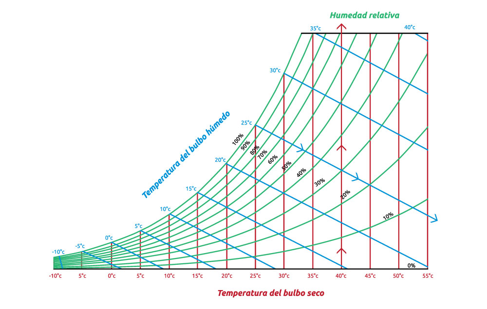 Para obtener el valor de la humedad relativa descarga la carta psicrométrica aquí