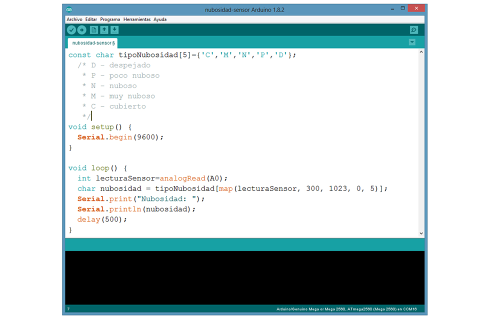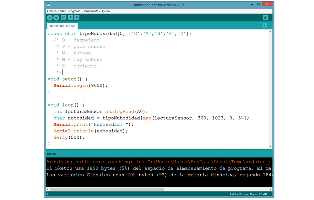 Descarga el código de arduino para implementar el sensor de nubosidad.
