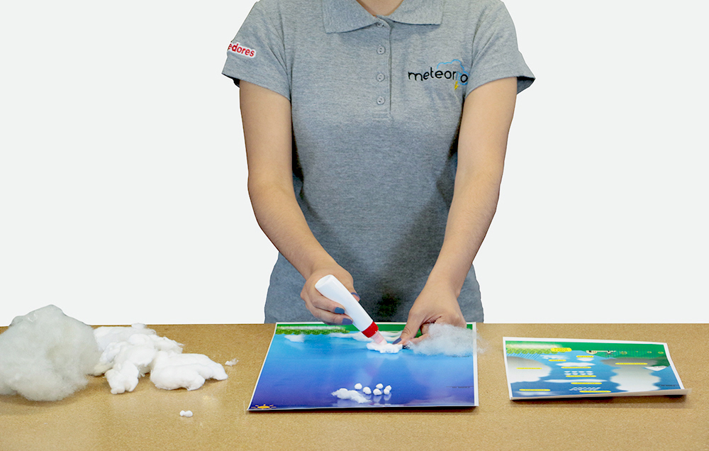 1.Con base en el diagrama de nubes, rellena la plantilla, usa el algodón para dar forma a las nubes (altas, bajas, acumuladas o delgadas). Recuerda colocar los 10 tipos de nubes: