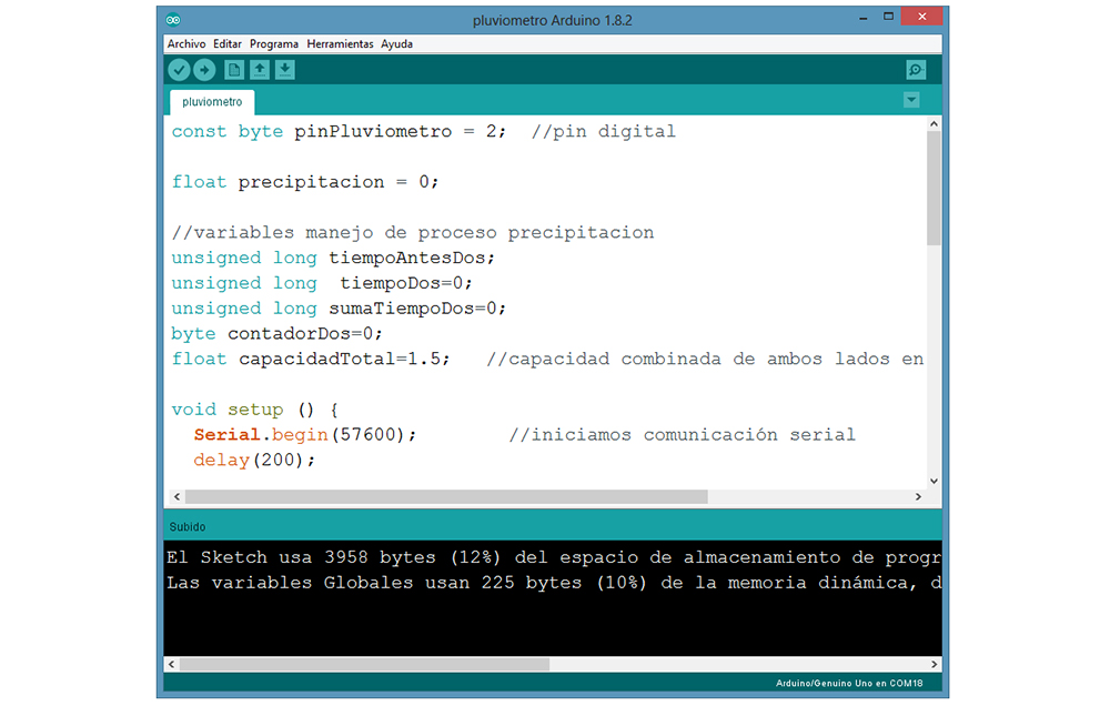 Descarga el código de arduino para implementar el sensor de precipitación.
