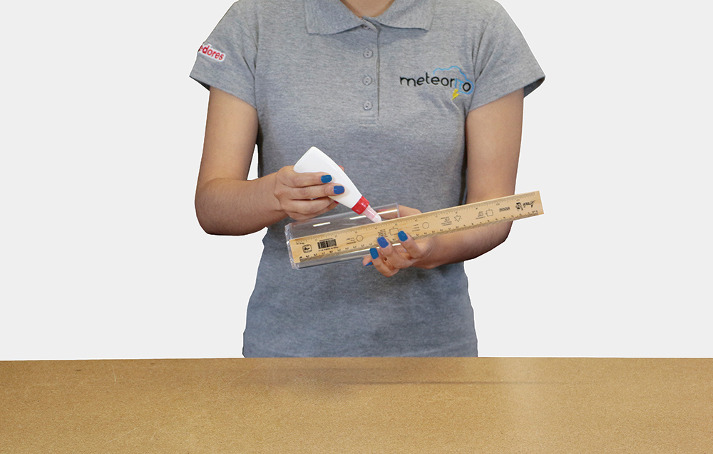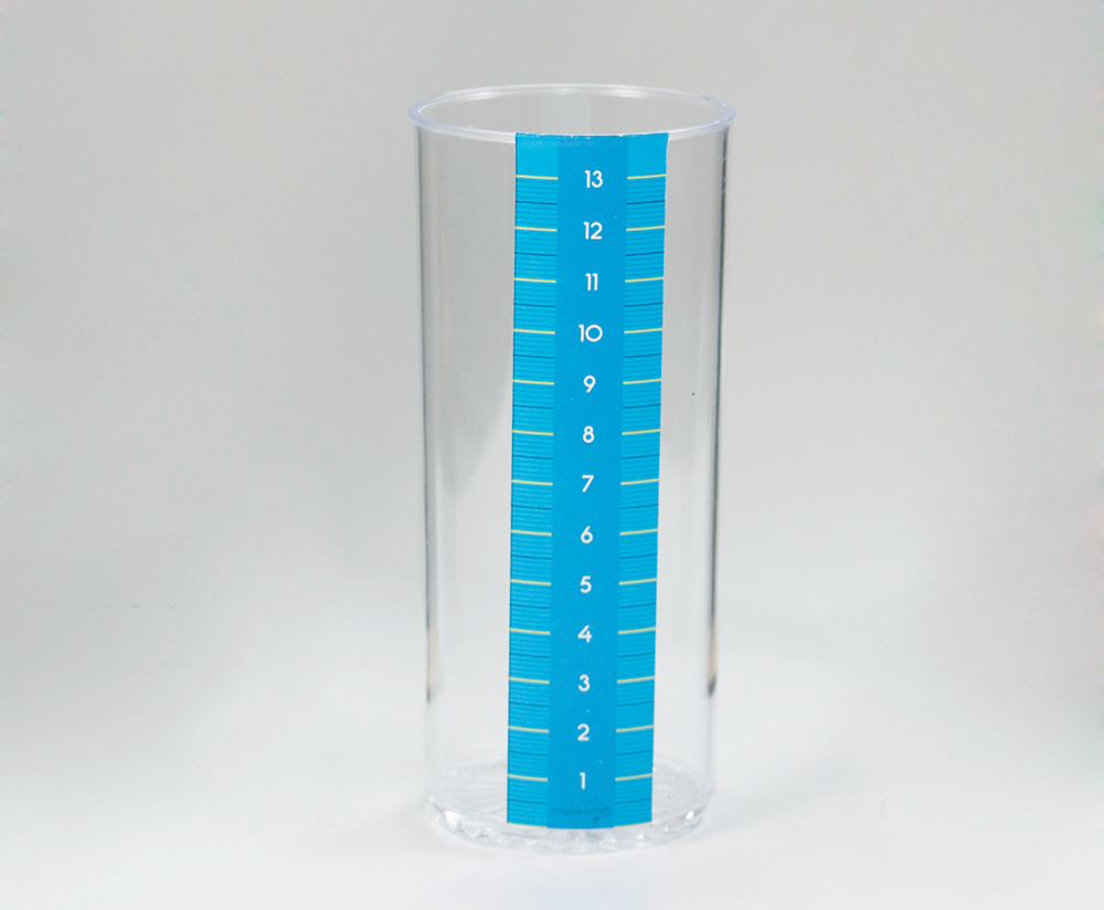 1.Pega la escala de manera vertical, en la parte lateral de la botella (escala en mm).