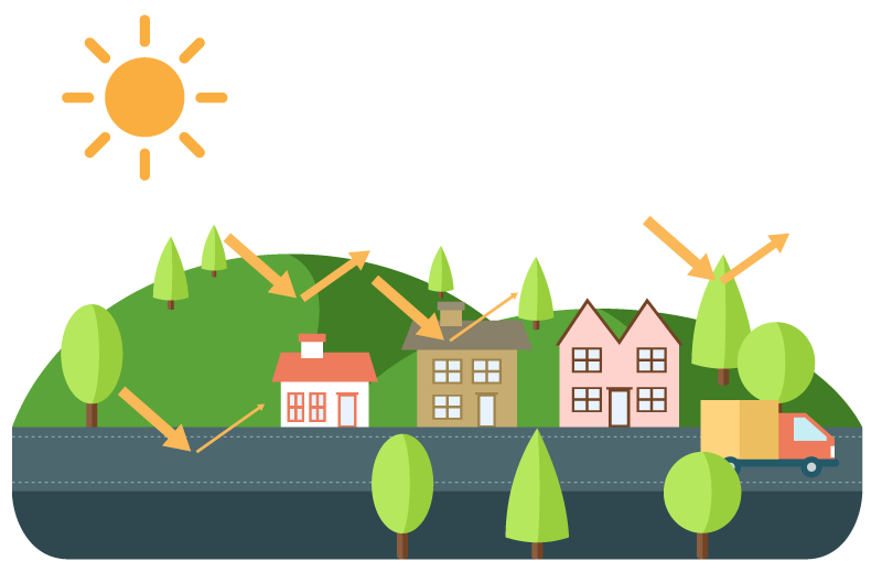 De acuerdo con National Geographic a lo largo del siglo pasado, el calentamiento global ocasionado por las actividades humanas que emiten dióxido de carbono, ha generado un aumento aproximado de 0,6 °C en la temperatura media del planeta. Ante esto y tomando en cuenta los conceptos vistos en clase, por ejemplo el albedo, una Solución para contrarrestar esto podría ser cambiar el asfalto tradicional de color negro, por uno más claro y así reflejar más la radiación en vez de absorber esa energía, sustituir equipos eléctricos para disminuir la temperatura de los edificios (Aire acondicionado y ventiladores) por proyectos tipo azoteas y muros verdes, ya que las plantas absorben la radiación del Sol.