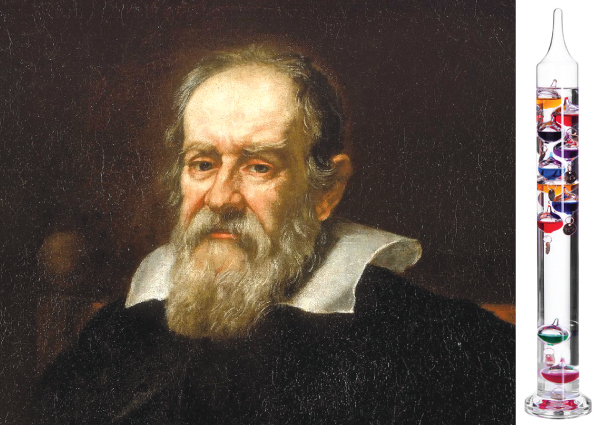 Galileo Galilei, astrónomo y físico italiano, jefe de Matemática en la Universidad de Padua, considerado uno de los padres de la ciencia moderna. En 1592 diseñó básicamente en un tubo de vidrio vertical, cerrado por ambos extremos, que contiene agua en la que se encuentran sumergidas varias esferas de vidrio cerradas, cada una de las esferas contiene, a su vez, una cierta cantidad de líquido a diferentes densidades. Sin una escala de medición, le llamamos termoscopio e Incluso el hecho de utilizar agua, fue un problema, ya que llegado a un punto, ésta se congelaba.