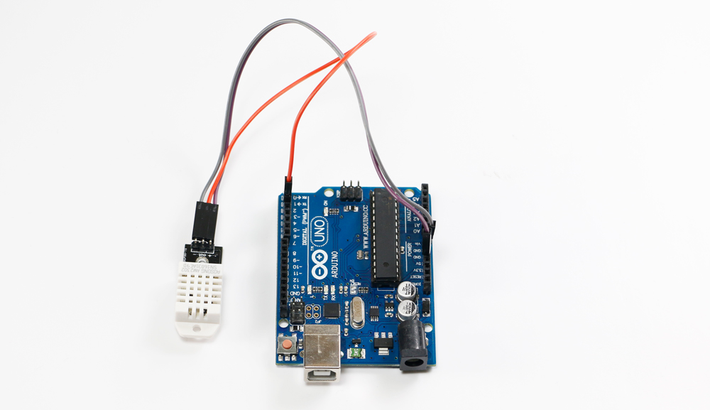 5.Conecta el sensor de temperatura al Arduino con los jumpers macho-hembra, como se muestra en el diagrama .