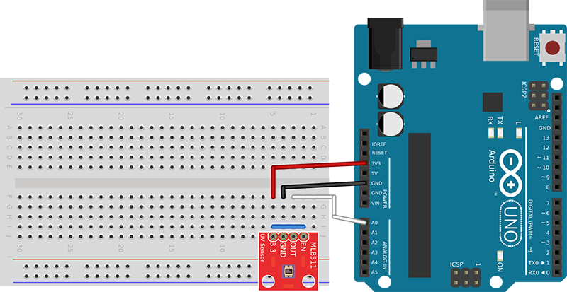 El sensor ML8511 detecta luz con una longitud de onda entre 280-390 nm (nanómetros), este rango cubre tanto al espectro UV-B como al UV-A. La salida analógica está relacionada linealmente con el índice de radiación UV. En el funcionamiento del sensor es importante, reconocer la parte que recibe la radiación con el fin de bloquear la luz del sol que incide en esta parte.