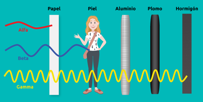 - Gamma: Es la radiación más penetrante de todas.